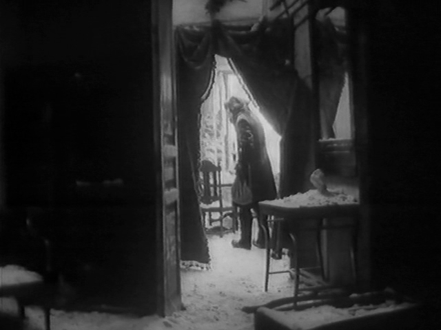 The half-hour Solo (1980), Lopushansky's second work, is also strongly concerned with the circumstances behind people's appearances. Set during WW2, it follows a shy, nervous musician from the Leningrad Philharmonic Orchestra, which is preparing to broadcast a symphony to England as a show of Russian strength in the face of a current German attack. Of course, the people are starving and anxious even without the pressure of performing what is essentially a Soviet PR mission. The film follows the day of the concert as the protagonist, who will have the center of attention when he plays an important French horn solo, hobbles around a wintry Leningrad showing no enemy soldiers but plenty of signs of institutional decay & walls closing in. Not much of immediate consequence happens so much as an interior war of attrition is externalized by the soloist's wandering through bleak surroundings, finding his home an abandoned ruin, fearing his own inability to bargain for food, and seeing bodies frozen in the snow.